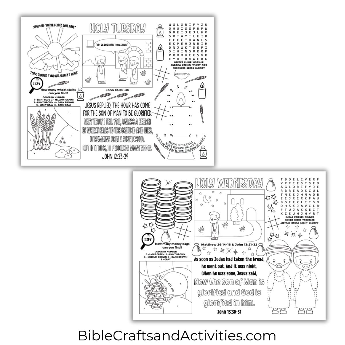The Holy Week Bundle of activity placemats is just right for parents, Sunday school teachers, or anyone looking to combine faith, fun, and learning on a single page!
