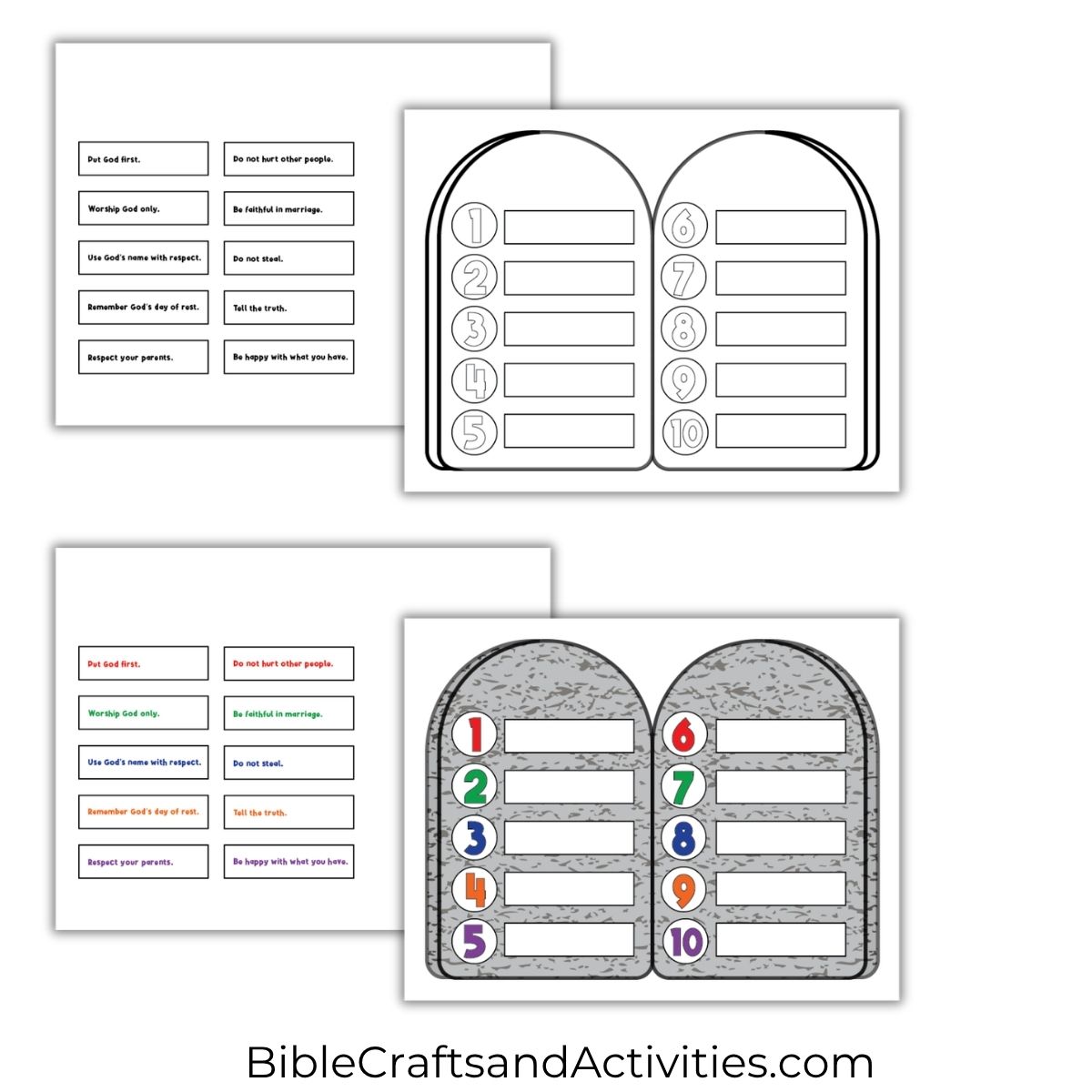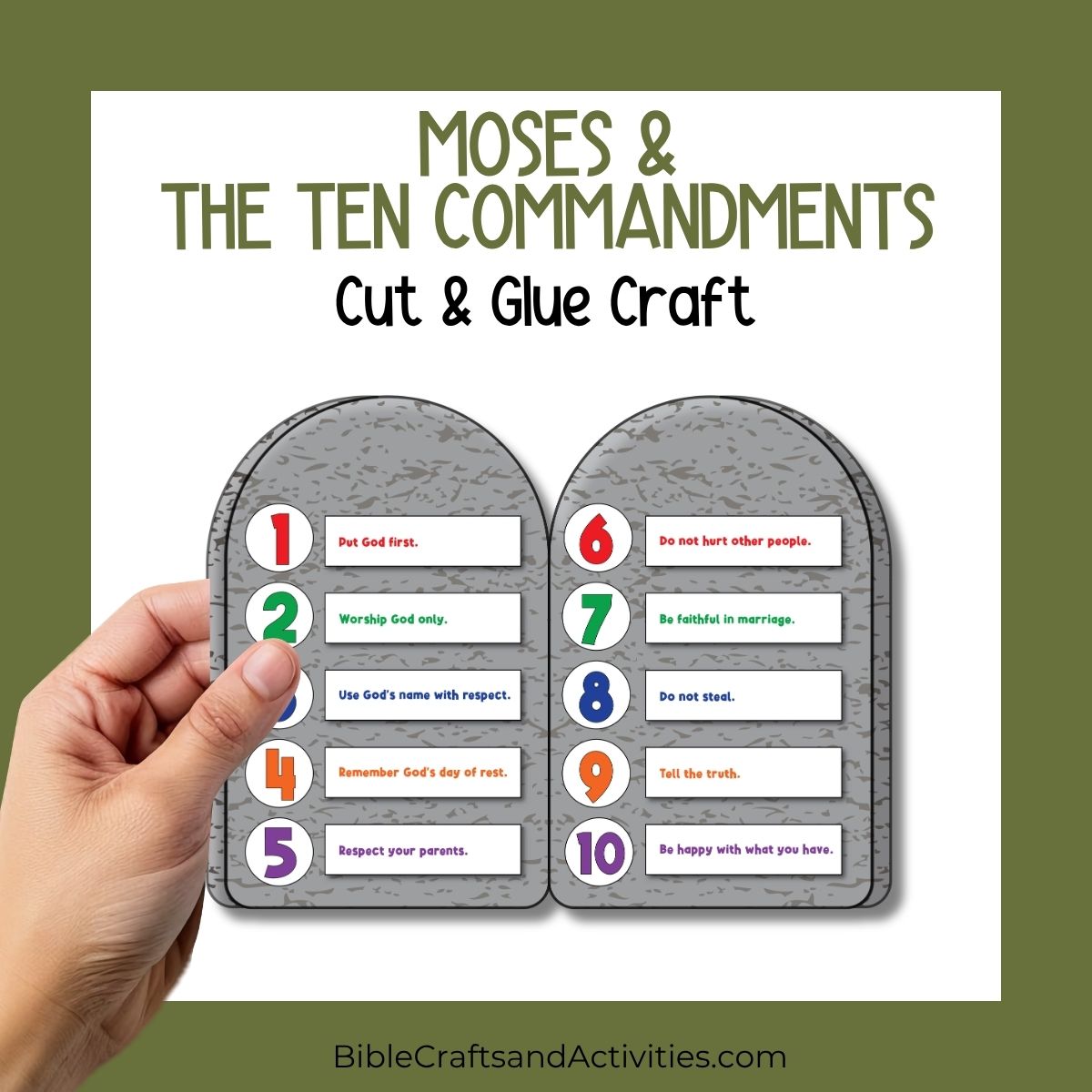 Enjoy this cut and glue craft for Exodus 20:1-4, 7-9, 12-20 illustrating the Ten Commandments.